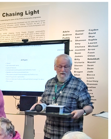 At the event, we also took the opportunity to acknowledge Charlie Shepherd, who has been volunteering in classes supporting adult literacies learners with West Lothian Adult Learning for the last 30 years.